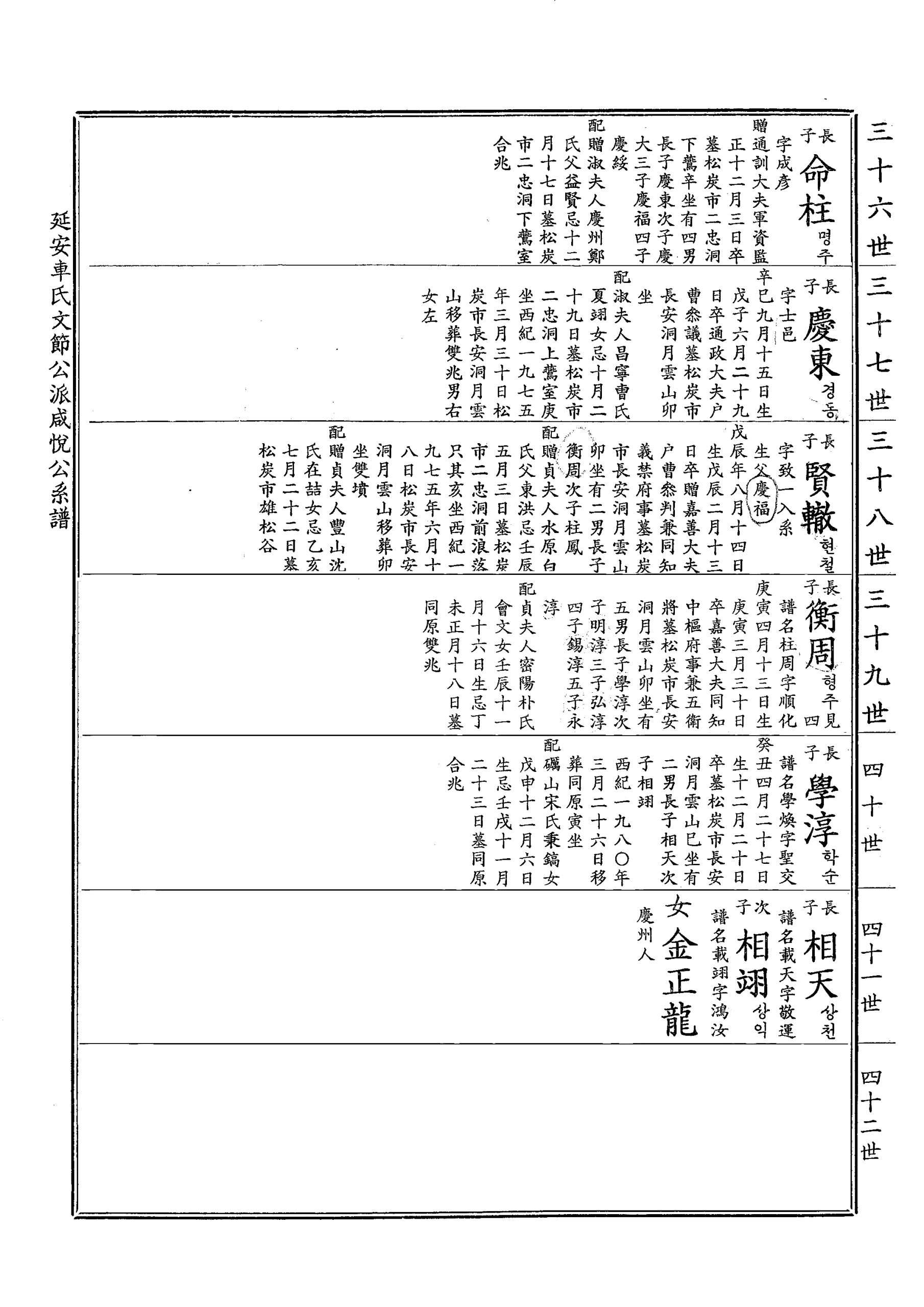 慶東(경동)係譜